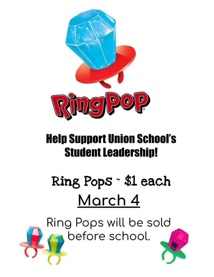 Help support Student Leadership on March 4th. They will be having a DOLLAR DAY sale on Ring Pops! The sale will take place before school in the gym.