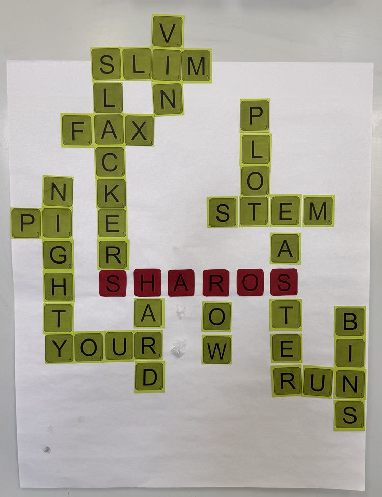 Mrs. Sharos's class is ready for Family Reading Night next week! They did a great job on their Scrabble board!